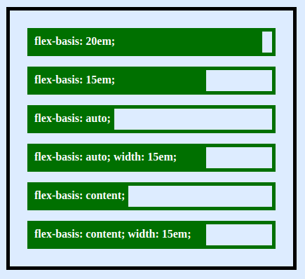 (flex-basis:100px; 일 시, 100px 이 안되는 아이템들은 100px 로 늘어나고, 100px 보다 큰 아이템은 그대로 유지됨)