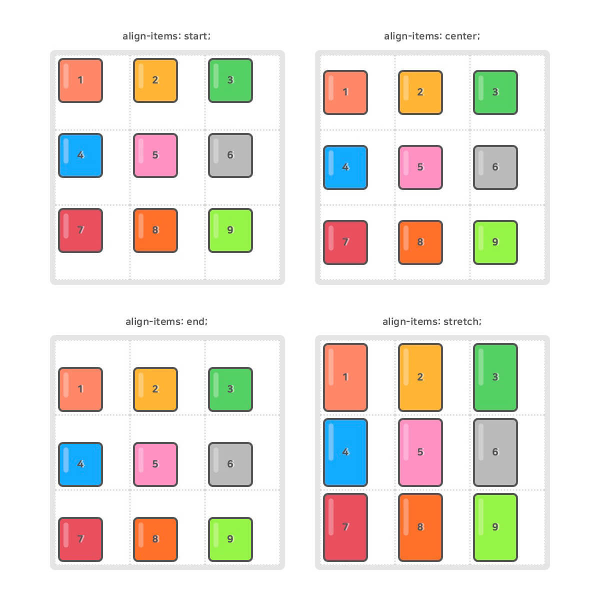 그리드 아이템들을 세로로 정렬하는 방식을 지정