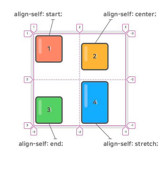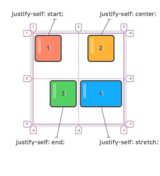 (그리드 아이템의 정렬 배치 등에는 직접적인 영향 x 뭔가 영향이 간다면 부모요소인 컨테이너에 부여된 속성에 따라 다 다름)