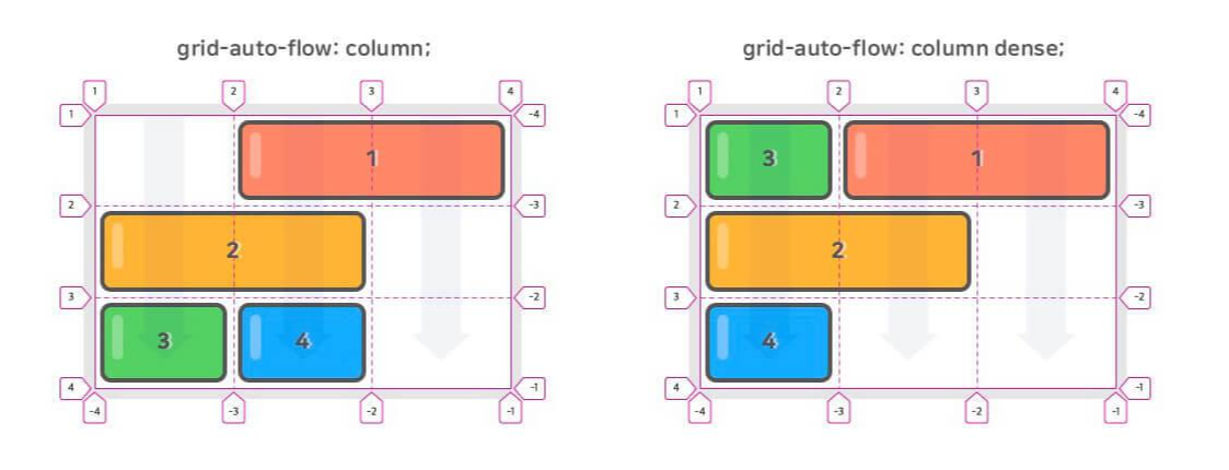 부모요소 선택자 { grid-auto-flow: 속성값; }