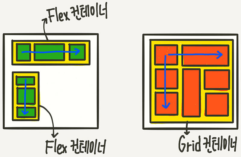 그리드 컨테이너의 배치를 지정하는 속성이며, 컨테이너와 컨테이너 사이의 관계를 지정하는 속성임