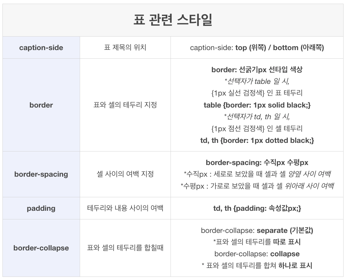 표 관련 스타일 'web > HTML + CSS' 카테고리의 다른 글