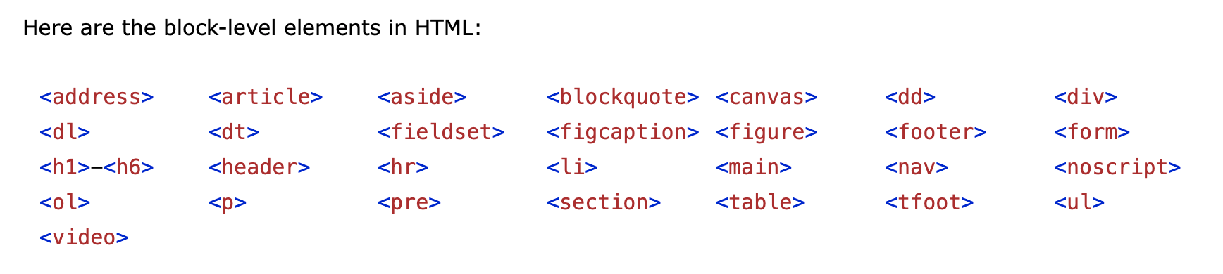 < 블록 레벨 (block-level) 과 인라인 레벨 (inline-level) >
