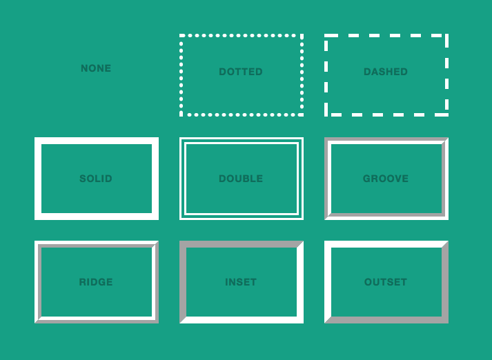 none / hidden / solid / dotted / dashed / double / groove / inset / outset / ridge